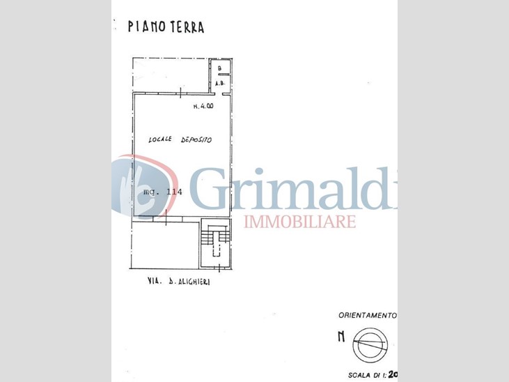 In zona periferica a due passi dal centro, proponiamo in vendita ampio locale deposito. Il suddetto è composto da ampio spazio fronte, mono vano di circa 120 mq con antibagno e bagno. Retrostante la struttura abbiamo verandina con vecchia cisterna. Della soluzione fa parte anche vano scala coperto laterale al locale.