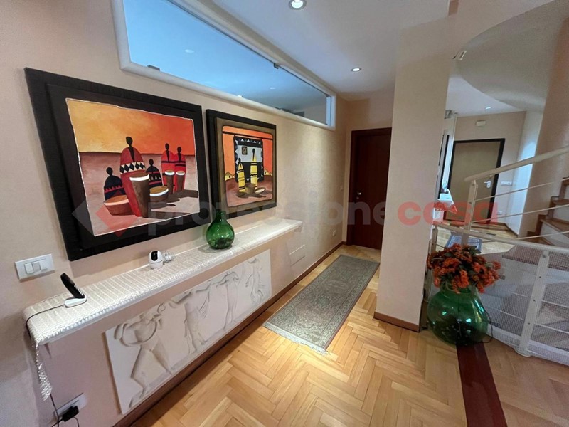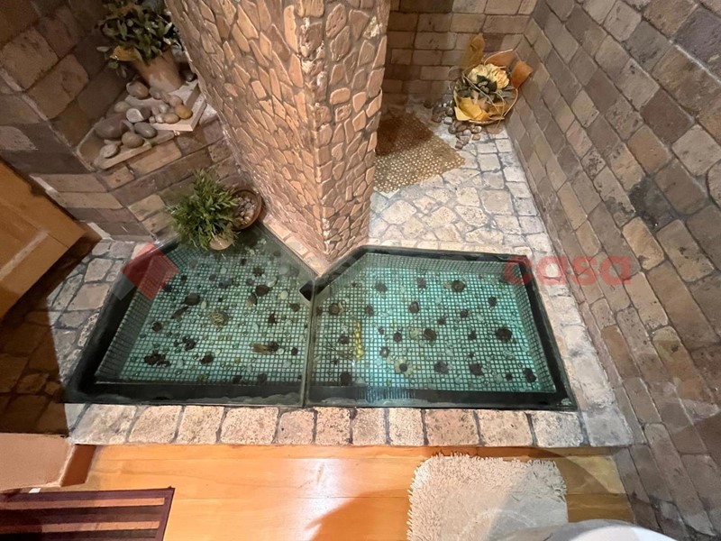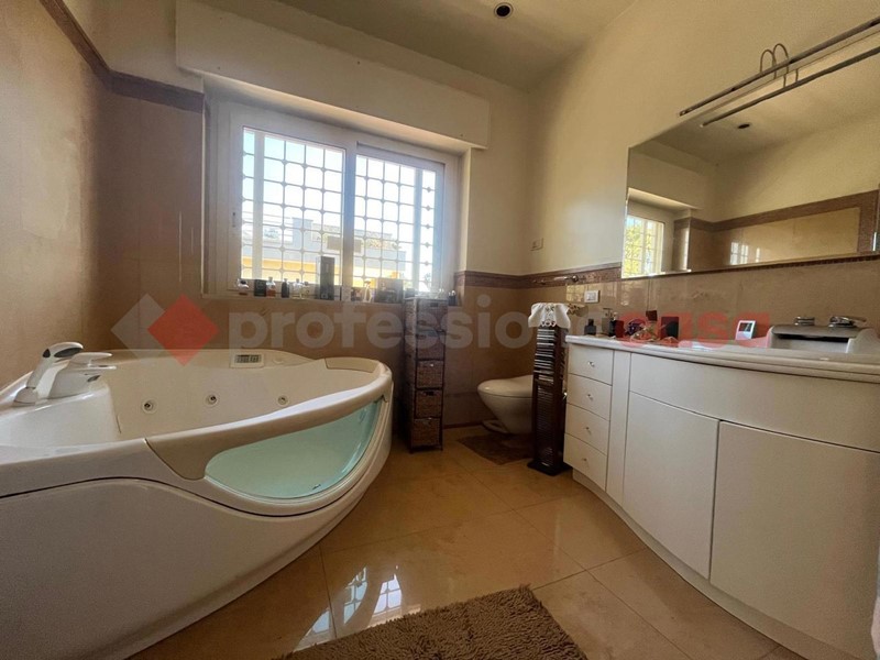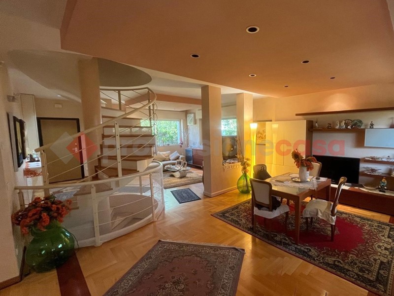 I mq interni sono circa 260 mentre il giardino che circonda completamente la proprietà sui 4 lati e di circa 250 mq con zona parcheggio , inoltre al primo piano troviamo ampi terrazzi da cui si può accedere sul terrazzo di copertura in cui troviamo la predisposizione di una vasca in muratura .