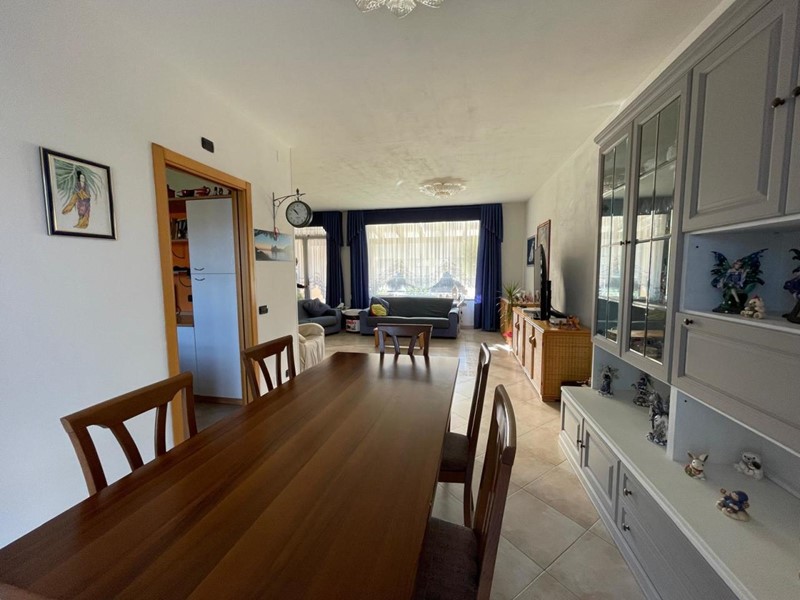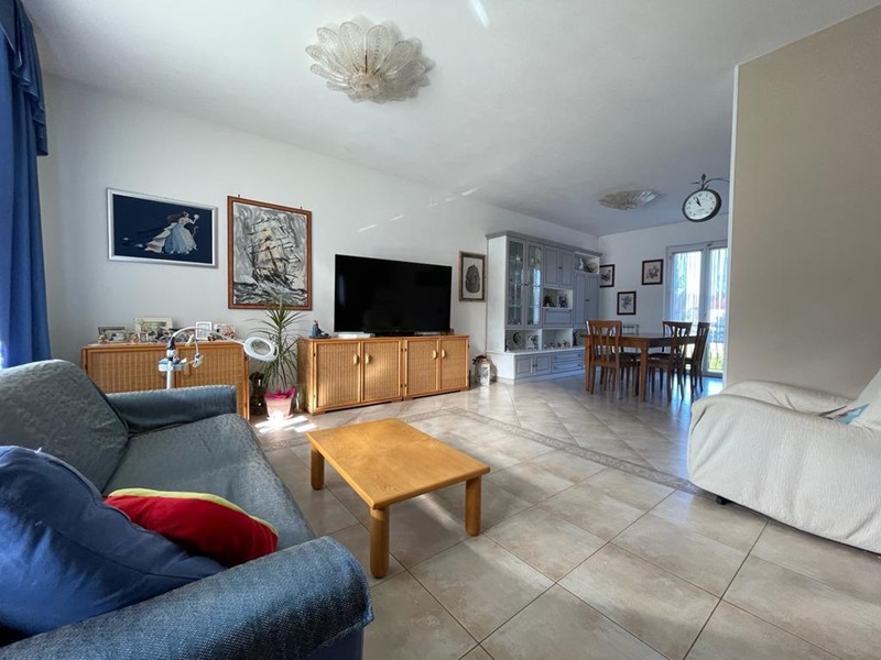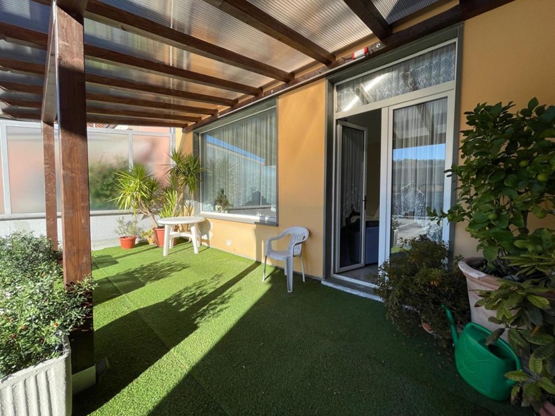 Porzione di bifamiliare sviluppata su unico livello organizzata in: accesso mediante cancello carrabile su piazzale adibito a posteggio, il tutto contornato da giardino privato, mediante scala interna si accede al piano abitativo dove si completa di ampia cucina abitabile la quale si affaccia su zona pranzo asservita da balcone, vasta zona divani scaldata da stufa a legna oltre ai classici termosifoni, la quale gode di estrema luminosità grazie ai grandi infissi che la separano dalla parte esterna caratterizzata da terrazzo di 130 mq complessivi. Nella zona notte l'immobile si completa con 3 ampie camere , doppi servizi di esagerate dimensioni, cabina armadi e comoda lavanderia finestrata.