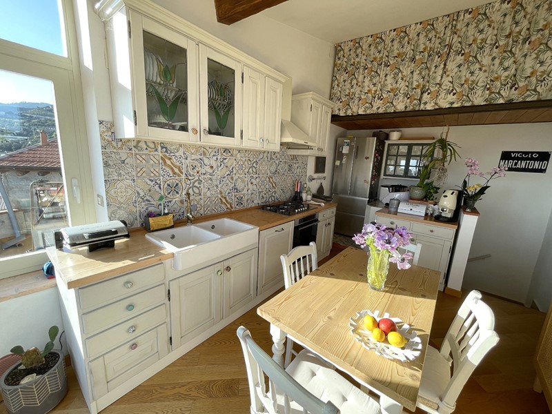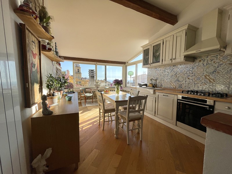 Splendido terracielo nel cuore di Coldirodi, la piacevole frazione di Sanremo amatissima dai nordeuropei. E' stato completamente ristrutturato nel 2018 con sapiente cura dei particolari, volta a conservare le caratteristiche della casa antica. Entrando, salendo tre gradini, di accede al piano rialzato, dove è ubicata la zona notte, composta dalla camera da letto matrimoniale e il bagno con la doccia, salendo al piano superiore si accede all'accogliente salotto, proseguendo, si raggiunge la spettacolare cucina/tinello in stile provenzale, dove è stata creata una veranda a copertura del terrazzino, formando così un unico piacevolissimo vano con vista spettacolare sui tetti del paese e sul mare. Tutta la casa è molto luminosa e nella ristrutturazione è stata riportata a vista la pietra originale, grazie ad un lavoro da certosino. Il riscaldamento è autonomo a gas e non ci sono spese di condominio. Adatto a giovane coppia per viverci, ma anche per vacanze o da reddito.