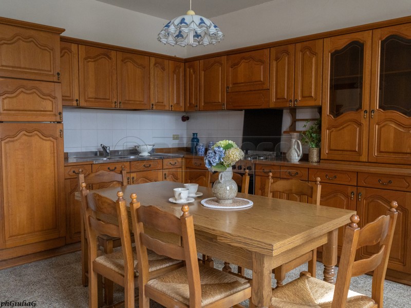 Attualmente l'abitazione si compone di cucina, sala da pranzo, veranda, due bagni, lavanderia, due camere, grande terrazza, soffitto e giardino esclusivo, oltre a deposito e garage in corpo di fabbrica separato, ma sarà facile prevederne un'eventuale redistribuzione.