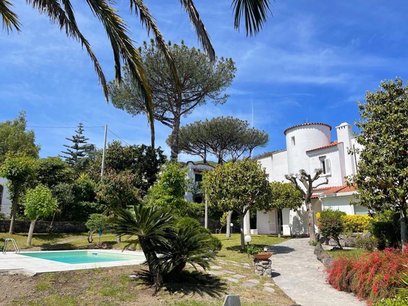VILLA PER VACANZE, CON PISCINA APERTA DA GIUGNO A SETTEMBRE, GIARDINO. COMPLETAMENTE IMMERSA NEL VERDE, IN UNA ZONA TRANQUILLISSIMA DI ISCHIA PORTO, DOTATA ANCHE DI 2 POSTI AUTO E MOTO.
