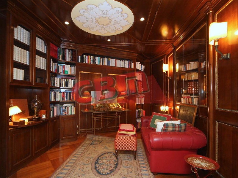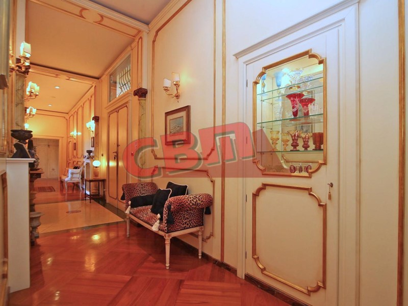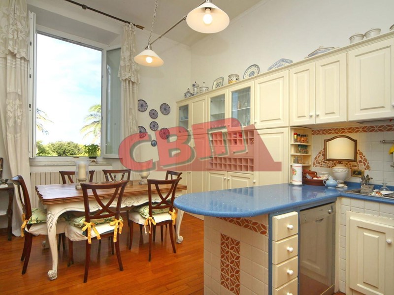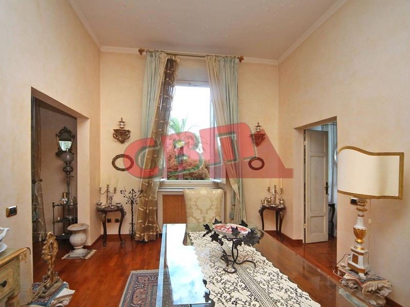L'attuale disposizione dell'appartamento, servito da ascensore, offre ingresso, grande salone doppio con camino,altro grande salone, ampia cucina abitabile, 6 camere da letto, fra cui una utilizzabile a studio con bellissima boiserie in legno, 4 bagni, 2 ripostigli, comoda lavanderia, 4 balconi (di cui uno affacciato sul mare e 3 verandati).