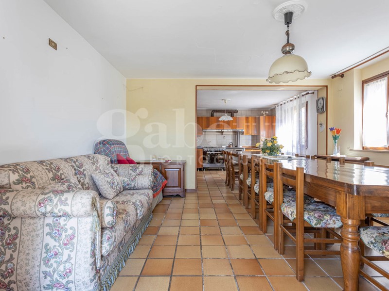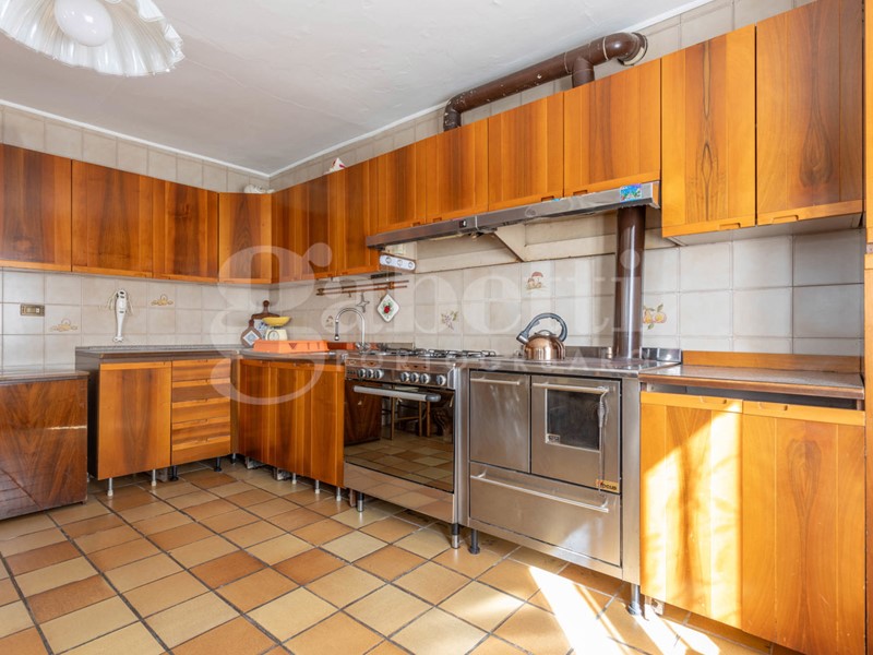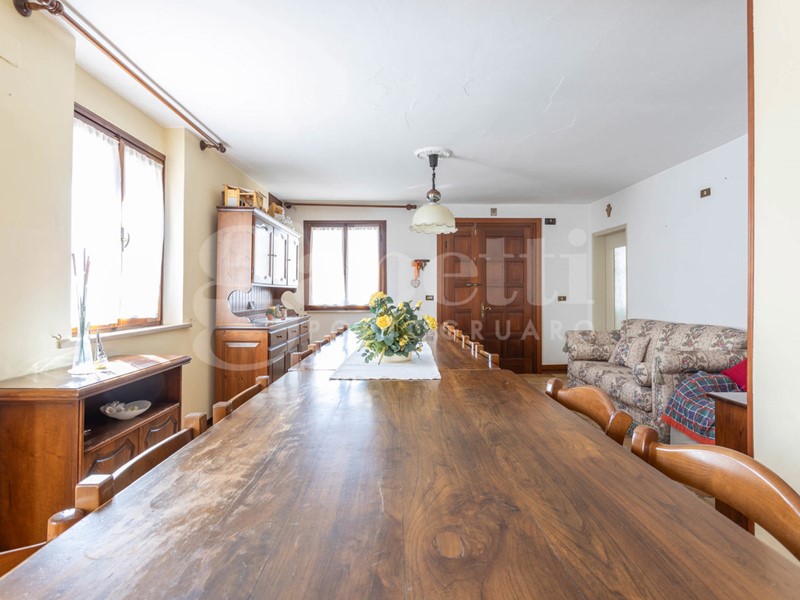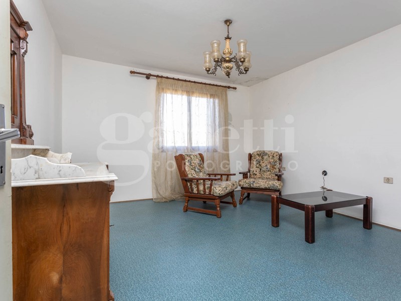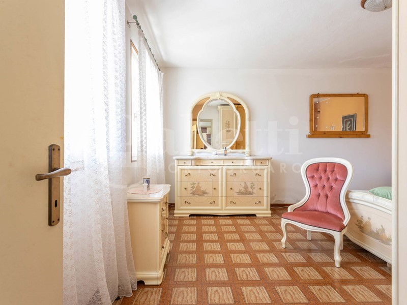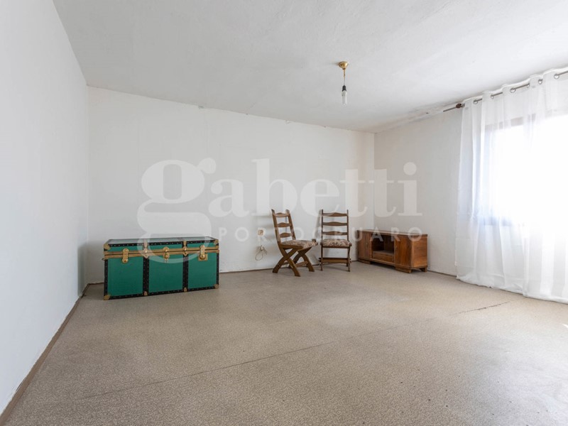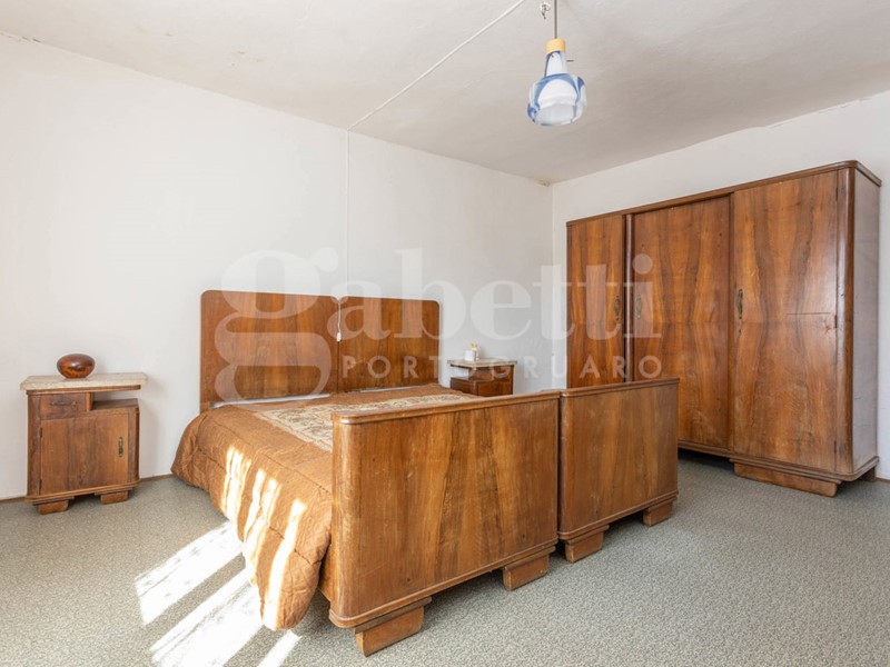 Ristrutturata parzialmente negli anni Ottanta, l'abitazione si compone, al piano terra, di una grande zona giorno con sala da pranzo e cucina, una prima camera da letto, il bagno ed un comodo ripostiglio, al piano primo invece, com'era d'abitudine, insiste la zona notte, nella quale troviamo quattro camere da letto di generose dimensioni, al piano sottotetto, invece, la grande soffitta con travi a vista.