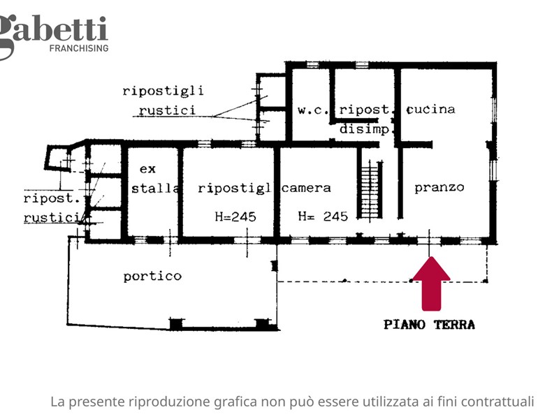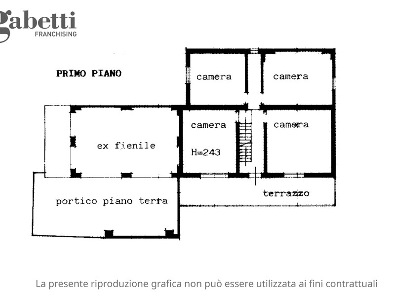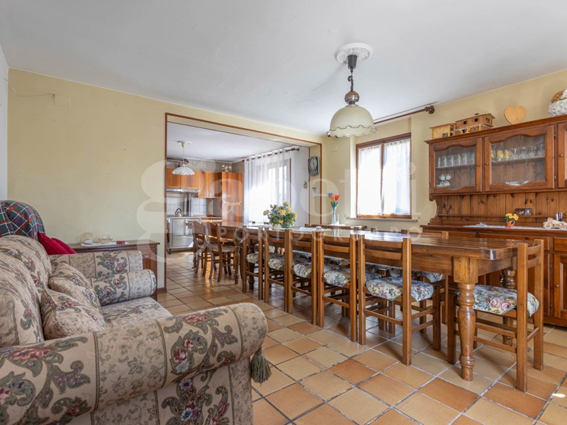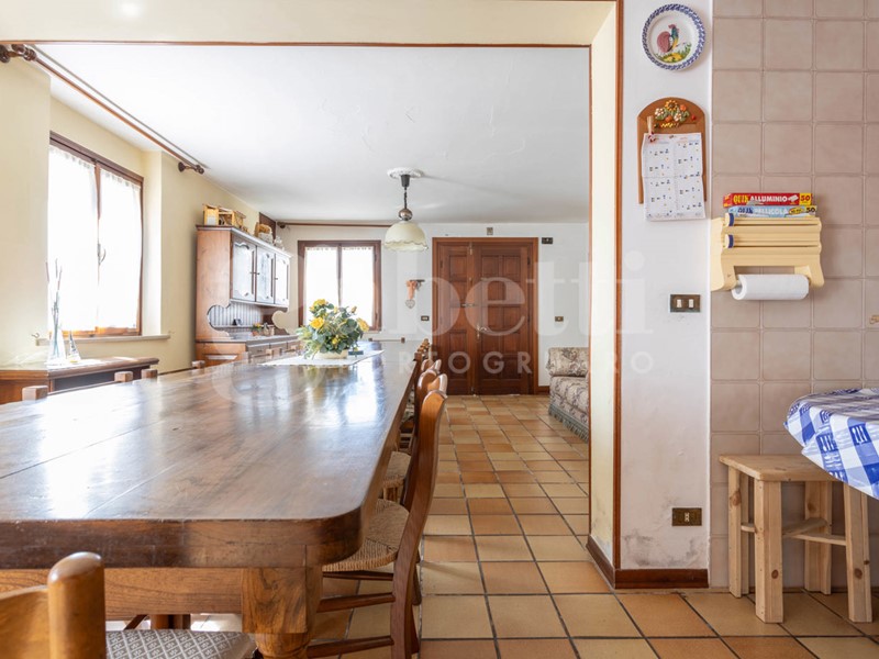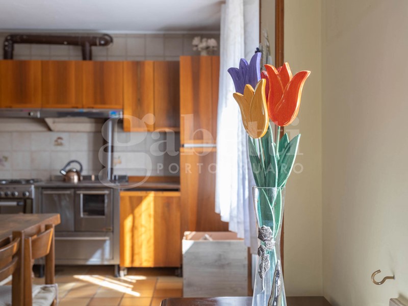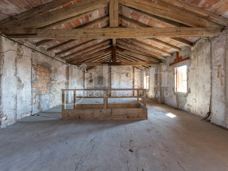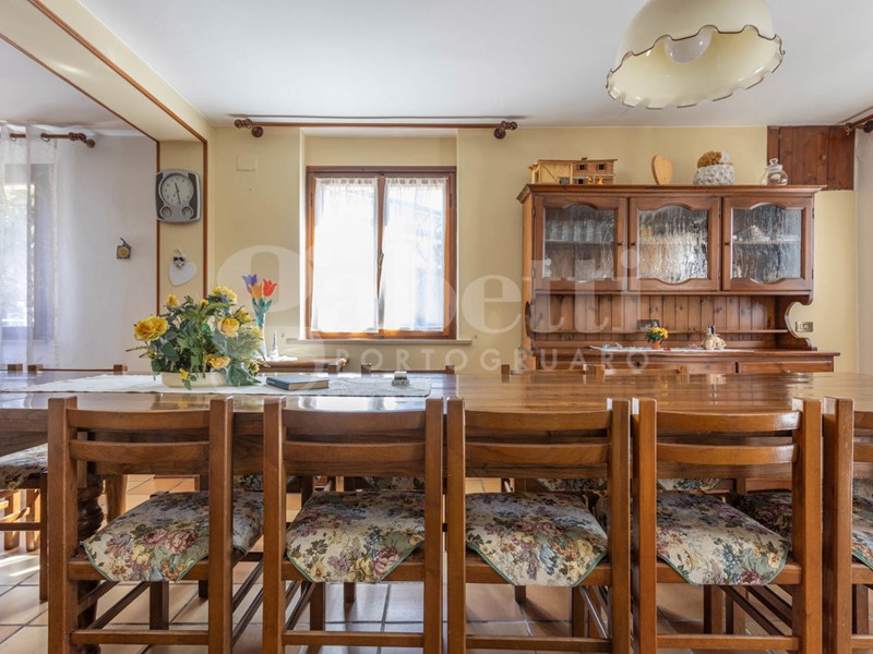 Ristrutturata parzialmente negli anni Ottanta, l'abitazione si compone, al piano terra, di una grande zona giorno con sala da pranzo e cucina, una prima camera da letto, il bagno ed un comodo ripostiglio, al piano primo invece, com'era d'abitudine, insiste la zona notte, nella quale troviamo quattro camere da letto di generose dimensioni, al piano sottotetto, invece, la grande soffitta con travi a vista.