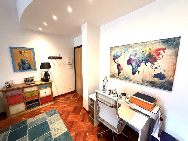 L'appartamento, completamente e finemente ristrutturato, presenta pavimenti in parquet, aria condizionata, cancelletti di sicurezza alle finestre e tende da sole.