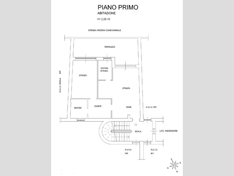 L'immobile è composto da ingresso, soggiorno con zona pranzo ed angolo studio, cucina semiabitabile, disimpegno con grande armadiatura, camera da letto matrimoniale e bagno con finestra. Tutti gli ambienti affacciano su un ampio terrazzo vivibile.
