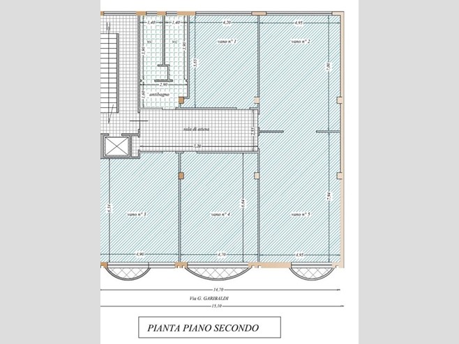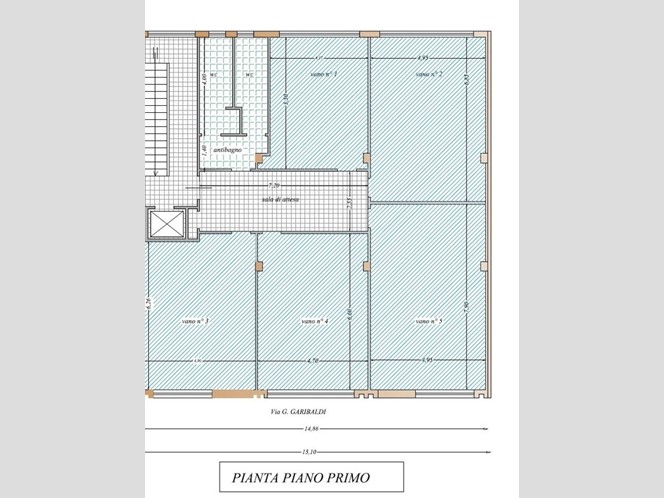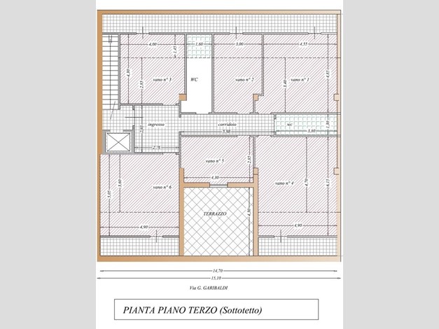 - ufficio al terzo piano mansardato composto da sei vani, un bagno e un terrazzo.