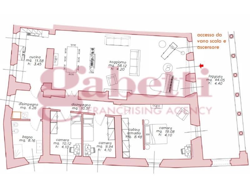 L'appartamento gode di un ingresso accogliente che conduce, attraverso un ampio loggiato ad uso esclusivo, ad una luminosa e spaziosa zona living di circa 58 mq, completa di una cucina abitabile contigua alla stessa; proseguendo, attraverso il disimpegno, si accede alla zona notte che ospita tre camere da letto, di cui una padronale dotata di una comoda cabina armadio. Il bagno, finestrato, presenta un disimpegno che include una zona lavanderia, rendendo gli spazi funzionali e ben organizzati. Lo stesso, a seguito di un'attenta riqualificazione, risulta essere confortevole, efficiente e funzionale; la sua realizzazione comprende tecnologie di ultima generazione, materiali innovativi e di qualità oltre ad impianti tecnologici all'avanguardia quali riscaldamento a pavimento, centrale termica a bassi consumi, pannelli fotovoltaici per produzione energia elettrica e impianto elettrico.