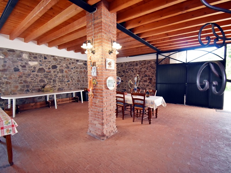 L’ingresso si apre su un grande portico utilizzabile anche come garage coperto, completo di centrale termica e ripostiglio. Una scala conduce al piano rialzato dove troviamo una taverna accogliente di ampie dimensioni, perfetta per ospitare amici e parenti, con bagno di servizio.