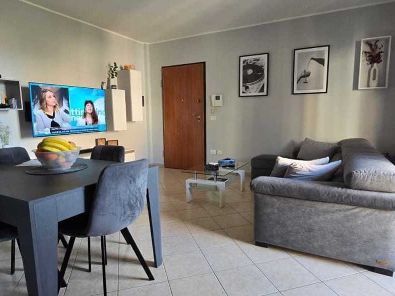 VIA SANDRO PERTINI, NUOVISSIMO APPARTAMENTO PIANO SECONDO, TERMOAUTONOMO A GAS CON CLIMATIZZAZIONE, ARREDATO FINEMENTE, COMPOSTO DA UNA AMPIA SALA CON CUCINA A VISTA E USCITA NEL BALCONE, RIPOSTIGLIO, DISIMPEGNO NOTTE, AMPIA CAMERA MATRIMONIALE E CAMERA DA LETTO PER BAMBINI, BELLA VISTA AL CORTILE ALBERATO CONDOMINIALE, OTTIMA ESPOSIZIONE A OVEST. COMPRENSIVO DI UN AMPIO BOX AUTO ACCESSIBILE ANCHE DALL'INTERNO DEL VANO SCALA CON TRIPLA CHIUSURA DAL BASCULANTE ESTERNO.