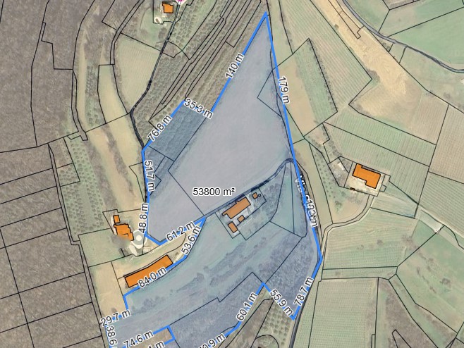 A completare la propriètà, la soluzione ha come pertinenza dei terreni di cui bosco e uliveti, per un totale di circa 52400mq.