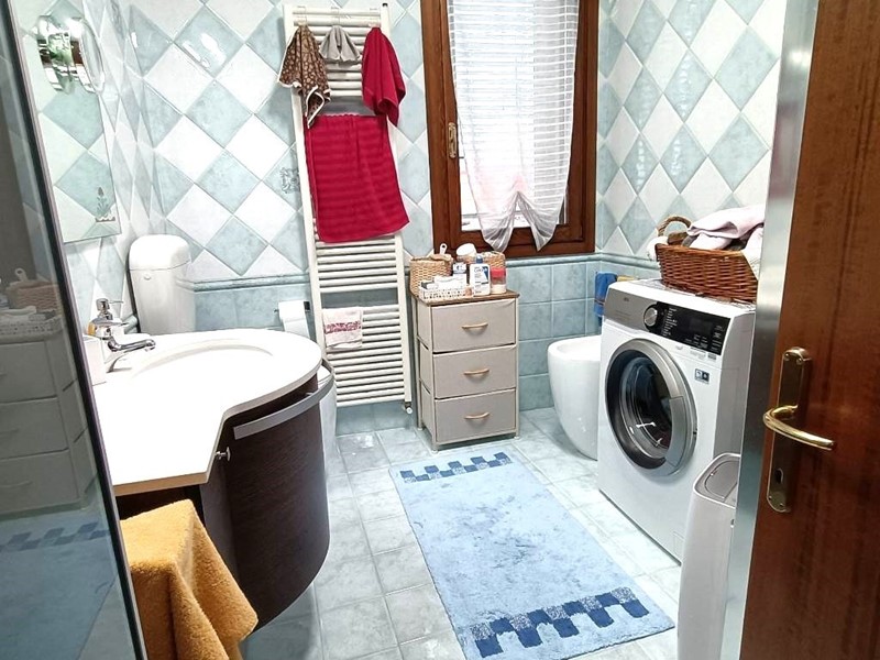 L'unità al piano primo è in perfetto stato ed è così distribuita: ingresso, ampio soggiorno, cucina separata, due camere da letto (una matrimoniale ed una singola), un bagno con finestra e box doccia. la caldaia è stata sostituita recentemente così come i serramenti che sono in pvc con vetrocamera.