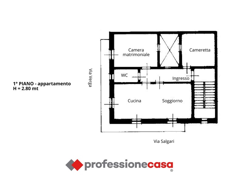 In Via Salgari, in una zona ben servita, proponiamo in vendita un ampio appartamento di 115 mq situato al primo piano di una palazzina composta da sole due unità abitative.