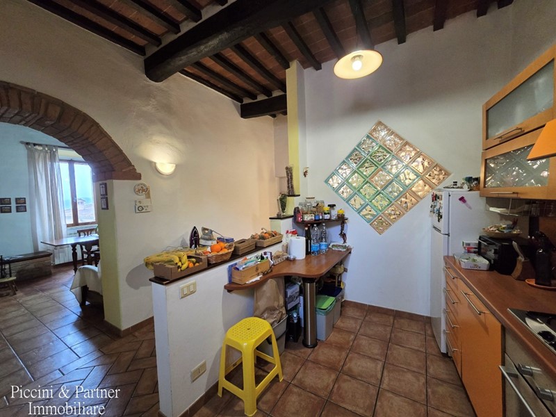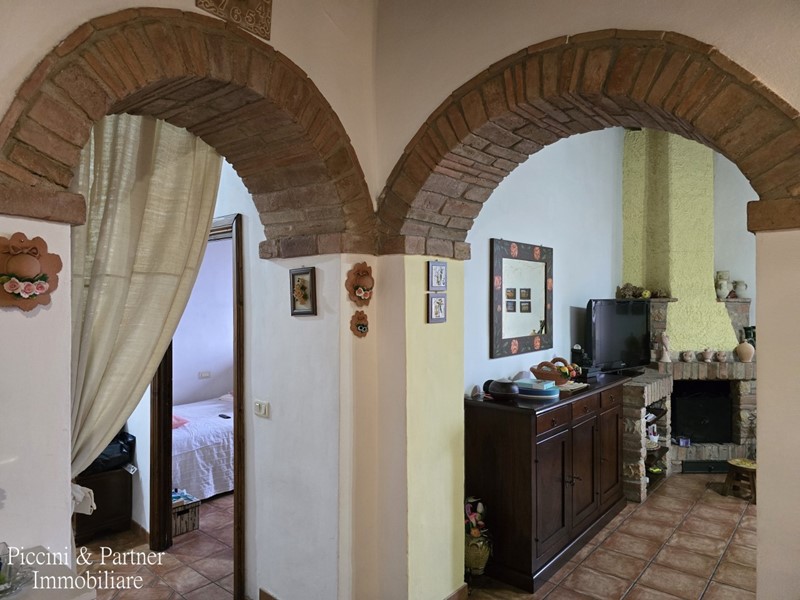 Internamente è composto da ingresso, caratteristica cucina a vista, ampio e panoramico soggiorno con camino e bella vista sulle colline circostanti, disimpegno, due camere e bagno finestrato con doccia.
