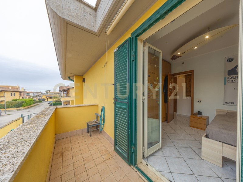 Il primo piano é composto da una camera matrimoniale, una cameretta e un secondo bagno con vasca, entrambe le camere sono servite da balcone privato.