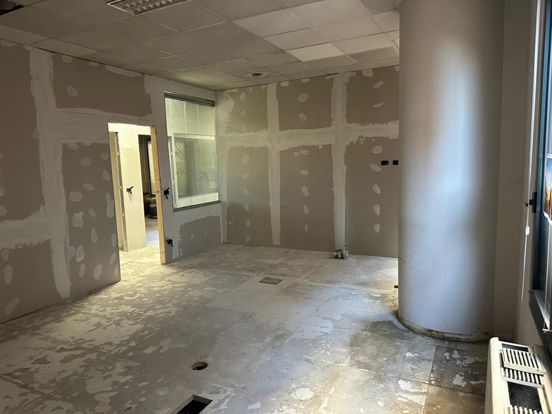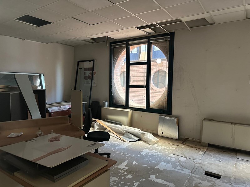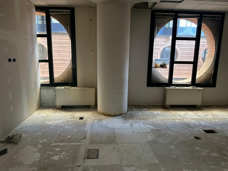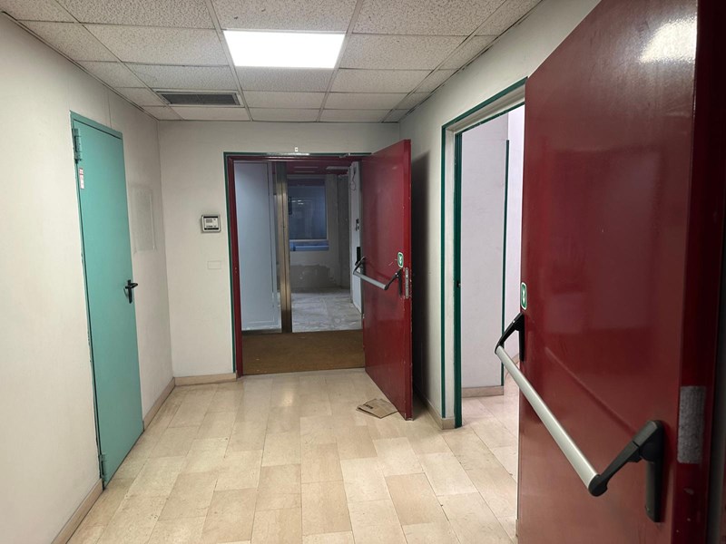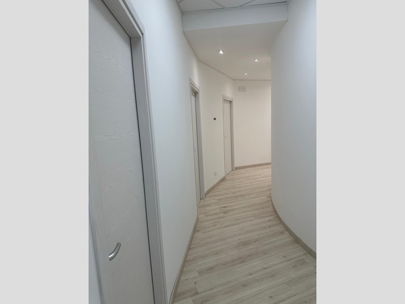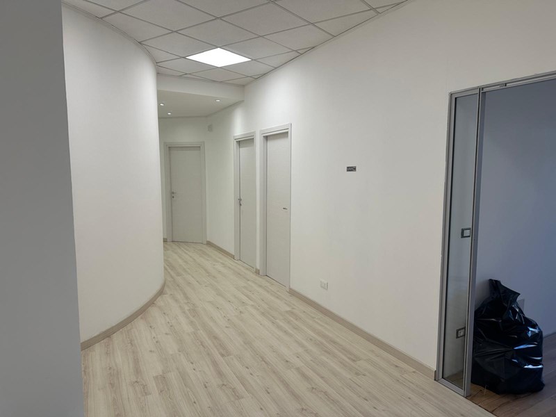 -la seconda parte dell'immobile è composta da 4 spazi da 50 mq ciascuno, locale segreteria, locale archivio/server, 3 bagni (1 per disabili), ripostiglio, porta blindata più un parcheggio di pertinenza in autorimessa interrata.
