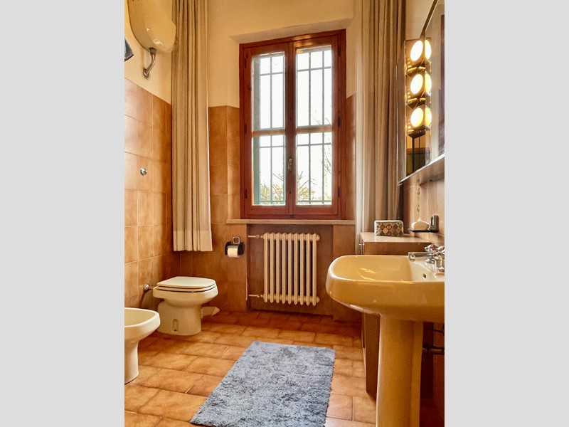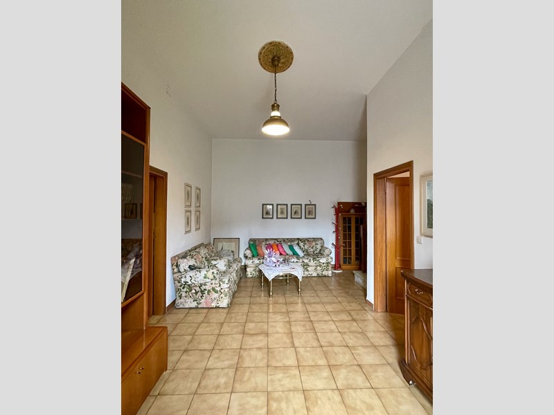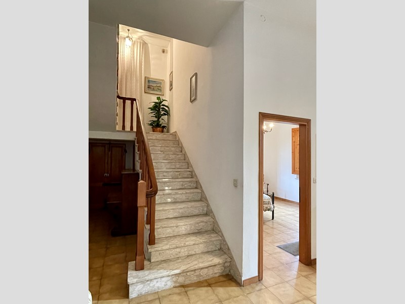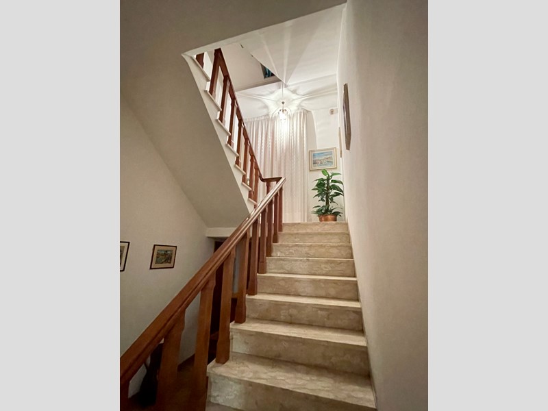 Al piano primo: ampio disimpegno, cucina/pranzo, salotto, quattro camere da letto e bagno. Un piccolo corridoio consente di accede ad un vasto terrazzo (oltre 52 mq.) che si affaccia anteriormente e posteriormente sul giardino.