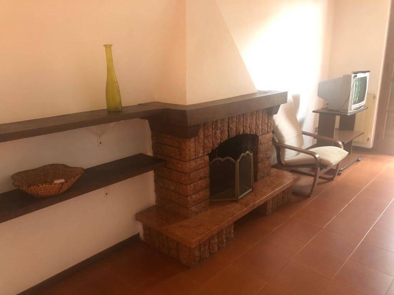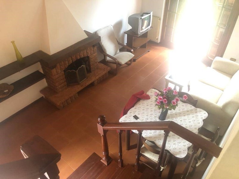 Piano Rialzato: Ingresso su Salotto con Camino, Cucina Abitabile e Bagno di Servizio con Doccia.