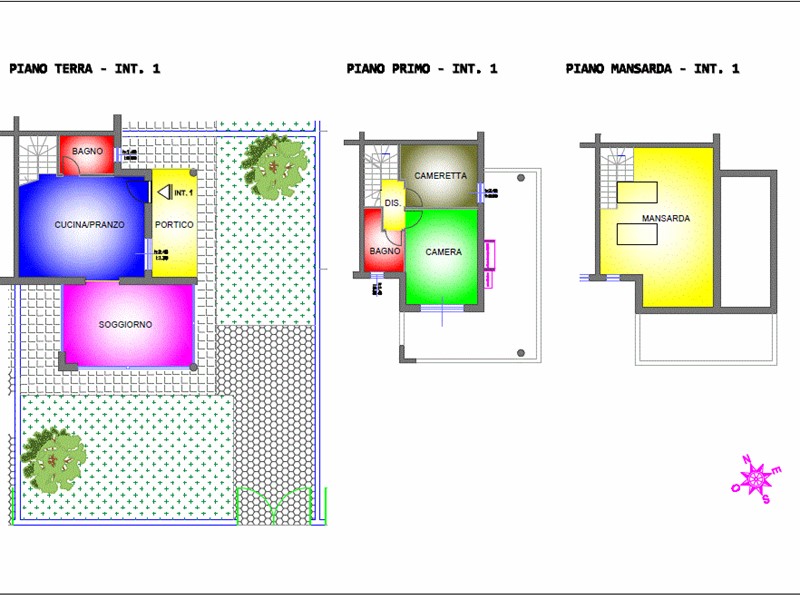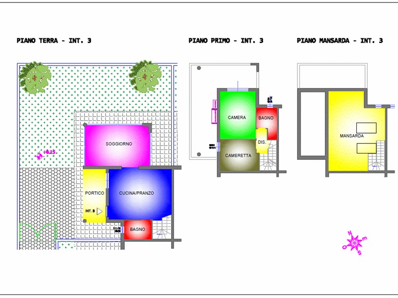 Ogni porzione di villa dispone di un ingresso indipendente che conduce all'ampio giardino privato con posto auto interno. La porzione di villa è disposta su tre piani ed è così composta: al piano terra troviamo un salone living, cucina a vista, bagno, una serra e un portico. Tramite una scala interna si accede al piano notte dove sono disposte due camere, un bagno e un terrazzo. A completare la proprietà, una mansarda con lucernai che offre uno spazio aggiuntivo ideale per uno studio, una camera extra o un'area relax.