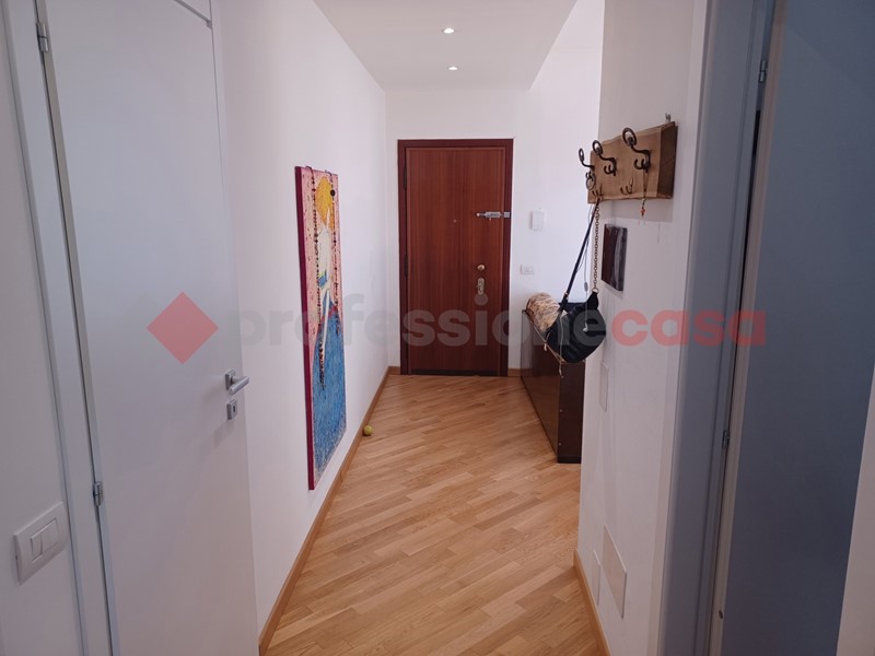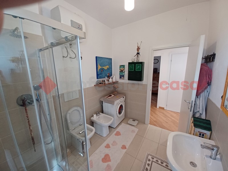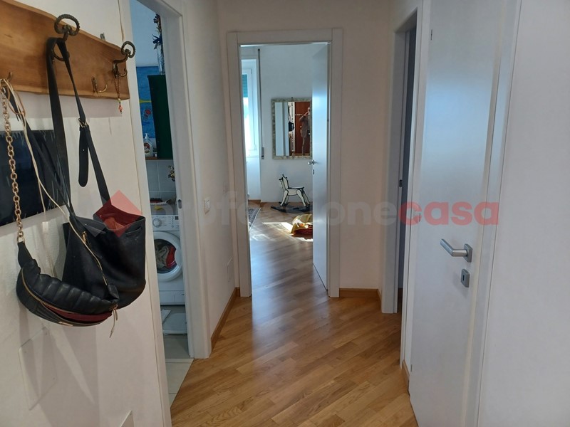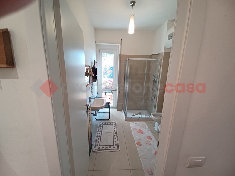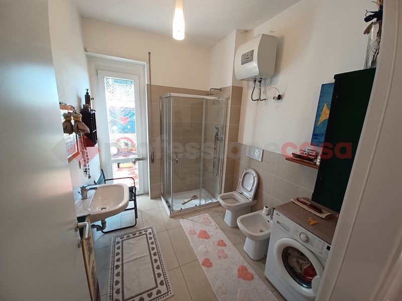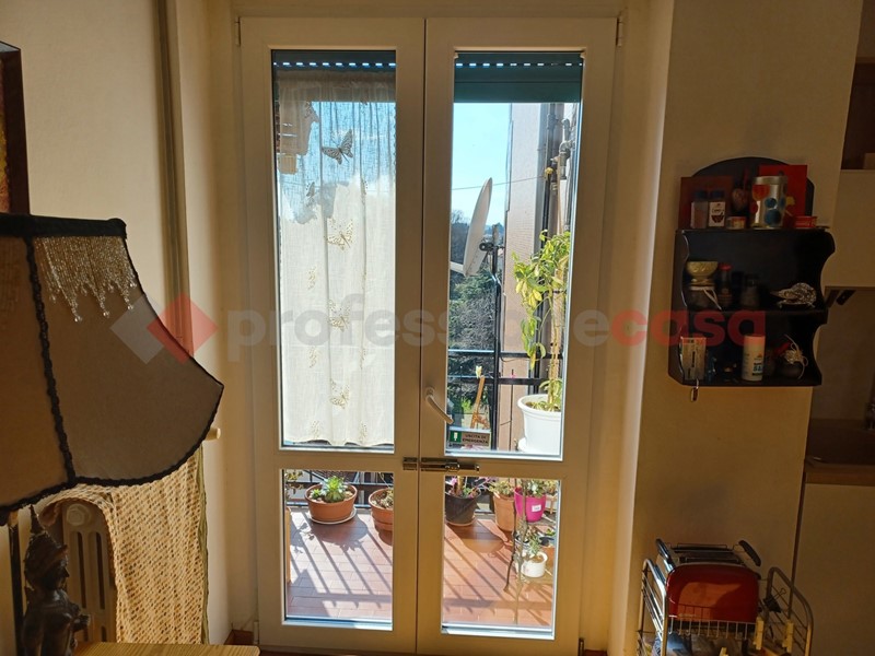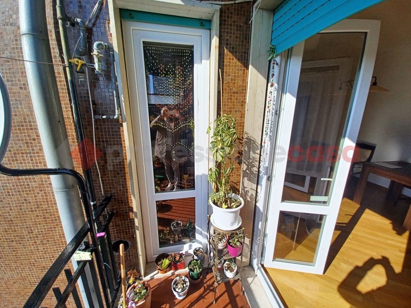 Diposizione: ingresso nel living con angolo cottura e balcone, disimpegno, servizio con doccia, ripostiglio. camera padronale, seconda camera. L'appartamento è ben tenuto, evidenti i segni di una recente riqualificazione. Pavimentazione in gres e parquet. Porte interne . Infirssi doppio vetro PVC. Gli oscurati sono a tapparella in PVC in buono stato. Porta blindata. L'impianto di riscaldamento è centralizzato con radiatori in ghisa con contabilizzatore di consumo. Boiler elettrico per la produzione dell'acqua calda. GAS FREE. - non necessita di contratto del metano.