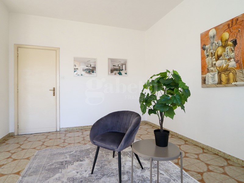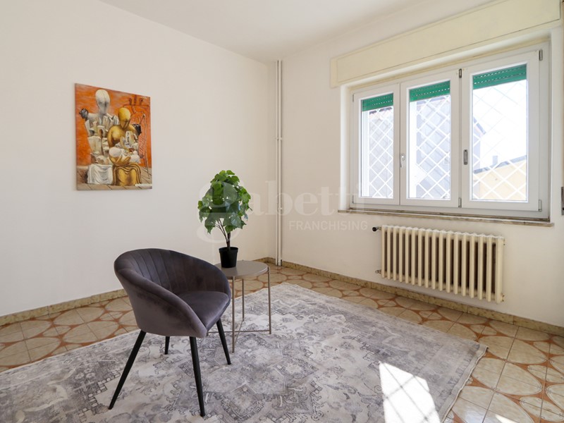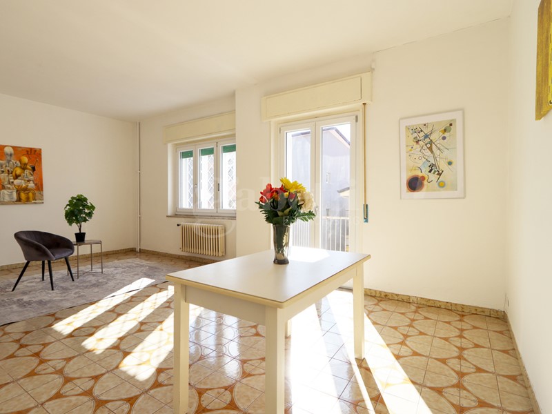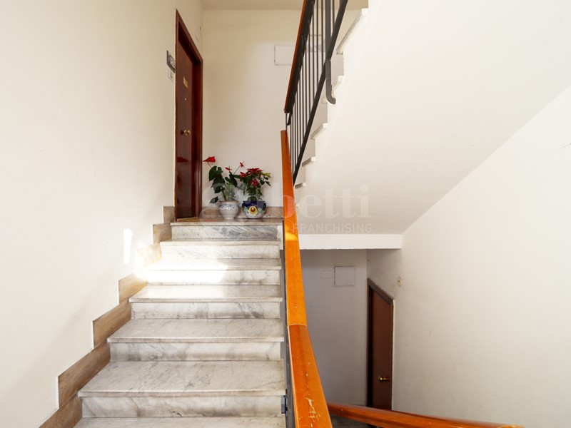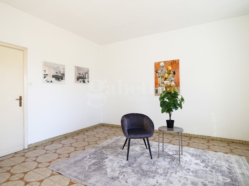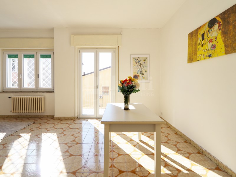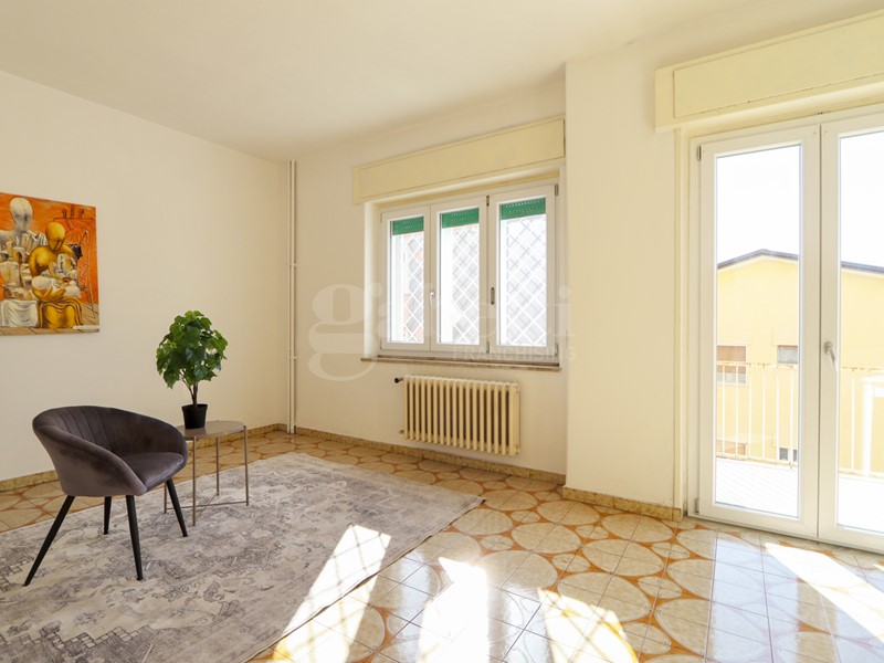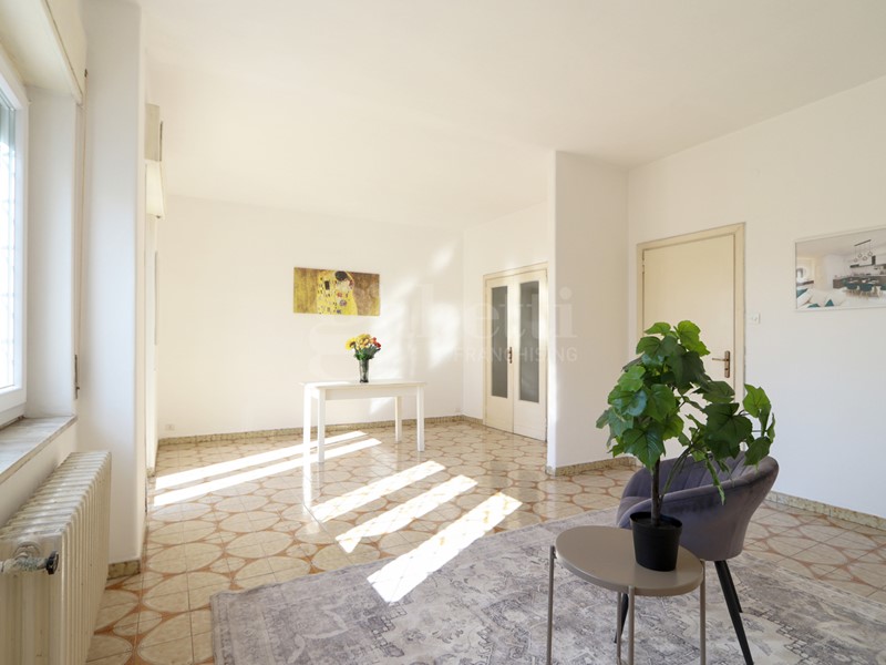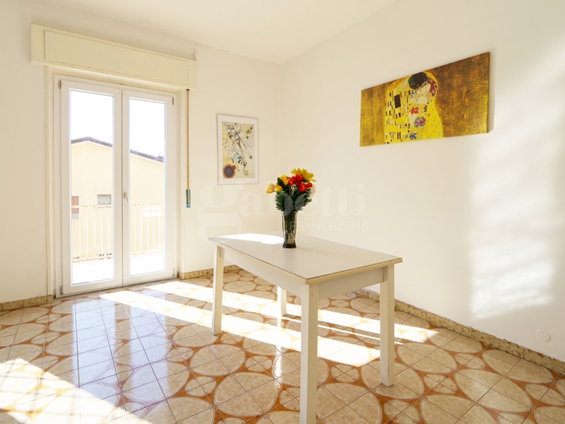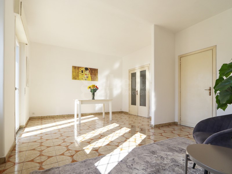 L'ingresso introduce a un accogliente e spazioso salone living doppio, caratterizzato da una piacevole esposizione esterna, con balcone e finestra che garantiscono grande luminosità durante tutta la giornata. Un ampio disimpegno, arricchito da pratiche armadiature, conduce alla cucina abitabile, dotata di un balcone verandato e di un bagno adibito a lavanderia, ideale per chi cerca un'area di servizio ben organizzata.