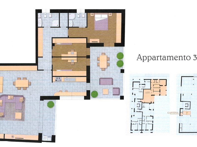 Rif. V465 (APP:TO 3) CASCINA APPARTAMENTO 4 VANI di prossima realizzazione, inserito in una piccola palazzina di sole 8 unità abitative, posto al primo piano di 147 mq circa (escluse le terrazze), si sviluppa su un unico livello ed è articolato in una zona giorno open space, ampia e confortevole, con lo spazio divani destinata al relax che si trova comunque defilata rispetto alla cucina/cottura altrettanto funzionale. Dalla cucina si accede direttamente alla grande terrazza coperta, dove poter godere di momenti rilassanti all’aria aperta durante i mesi più caldi e dove svolgere pranzi o cene conviviali. La zona notte è composta da un ampio disimpegno arredabile, tre camere (una matrimoniale, due singole) dalle quali si accede alla terrazza, e doppi servizi, un comodo e funzionale ripostiglio, infine una terrazza a loggia esterna accessibile dal soggiorno. E' corredato in proprietà esclusiva di due posti auto coperti e una cantina al piano terra.