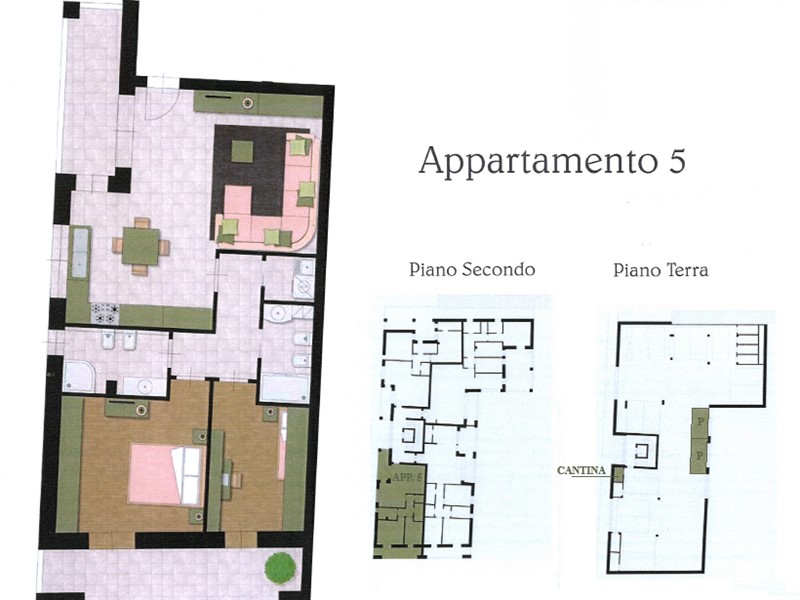 Rif. V495 (APP.TO 5) CASCINA APPARTAMENTO 3 VANI di prossima realizzazione, inserito in una piccola palazzina di sole 8 unità abitative, posto al secondo ed ultimo piano di 91 mq circa (escluse le terrazze), si sviluppa su un unico livello ed è articolato in una zona giorno open space confortevole, con lo spazio divani destinata al relax che si trova comunque defilata rispetto alla zona pranzo/angolo cottura, tutto l'ambiente giorno si apre verso la terrazza coperta. La zona notte è composta da un disimpegno, due camere (una matrimoniale, una singola), doppi servizi, un comodo e funzionale ripostiglio/lavanderia, infine una terrazza a loggia esterna nel reparto notte. E' corredato in proprietà esclusiva di due posti auto coperti e una cantina al piano terra.