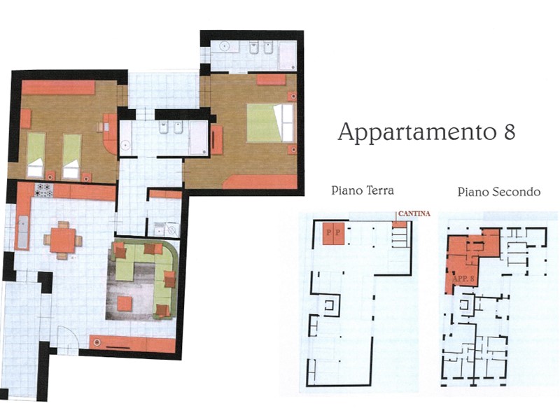 Rif. V560 (APP.TO 8) CASCINA APPARTAMENTO 4 VANI di prossima realizzazione, inserito in una piccola palazzina di sole 8 unità abitative, posto al secondo piano ed ultimo di 110 mq circa (escluse le terrazze), si sviluppa su un unico livello ed è articolato in una zona giorno open space confortevole, con lo spazio divani destinata al relax che si trova comunque defilata rispetto alla cucina/cottura altrettanto funzionale con accesso alla terrazza coperta. La zona notte è composta da un disimpegno, due camere matrimoniali di cui una con un bagno dedicato, un ulteriore bagno e un comodo e funzionale ripostiglio/lavanderia. E' corredato in proprietà esclusiva di due posti auto coperti e una cantina al piano terra.