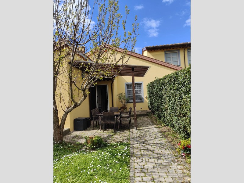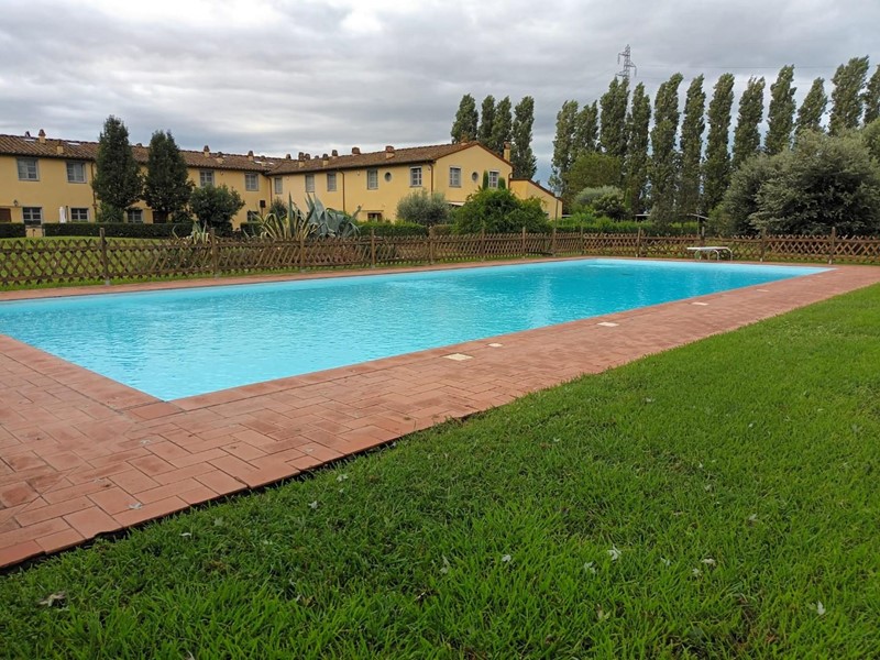 ~COLIGNOLA~ In bellissimo complesso elegante e di recente costruzione, con piscina, zona di ritrovo comune e campo da tennis, immerso nel verde e con vista sui monti pisani, a due passi dal lago di Colignola, in zona silenziosa e molto ben tenuta, proponiamo in vendita luminosissima villetta a schiera angolare con accesso indipendente e giardino privato. L'immobile, costruito nel 2004 e recentemente ristrutturato, è così composto: ingresso da giardino privato che costeggia l'abitazione su tre lati, ampio e luminoso soggiorno con pavimento in cotto, travi a vista e camino, cucina abitabile. Procedendo arriviamo nella zona notte composta da una camera matrimoniale e una camera media con armadio a muro, oltre a bagno con doccia e comodissimo e ampio ripostiglio sottoscala. Dalla zona giorno è possibile accedere all'ampia mansarda, attualmente utilizzata come terza camera oltre a bagno completo di sanitari, lavandino e doccia.