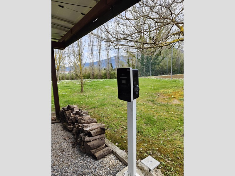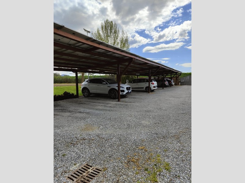 Completa l'offerta due ampi parcheggi coperti da tettoia in legno dove insiste un colonnino doppio per ricarica delle auto elettriche.