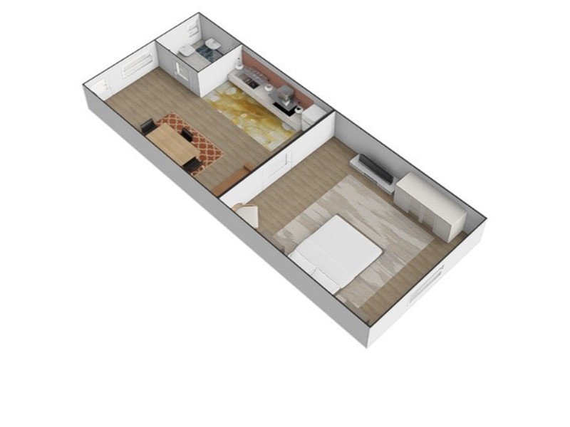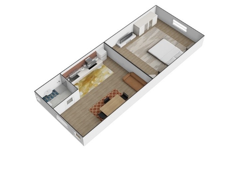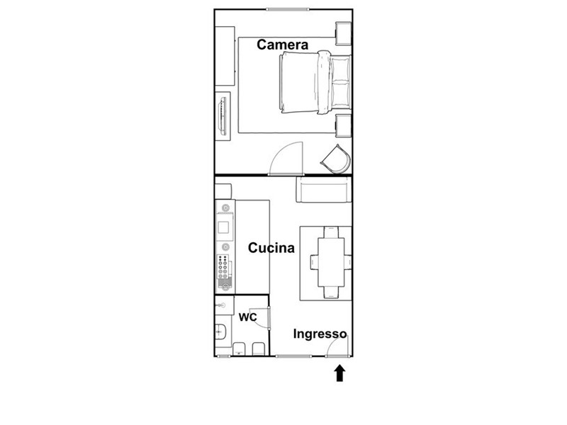 L'appartamento, recentemente ristrutturato, si trova al secondo piano di un edificio senza ascensore ed è composto da una camera da letto, un bagno e una zona giorno open space