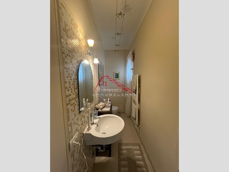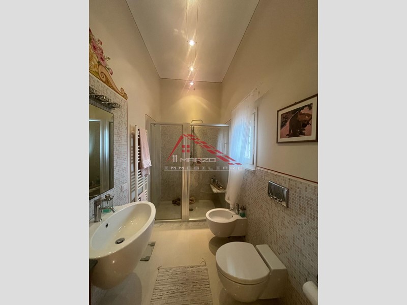 La villa è stata ristrutturata completamente qualche anno fa ed è quindi in perfetto stato. Si compone al piano terra rialzato da: ingresso, soggiorno con camino, sala pranzo, cucina semi-abitabile, bagno finestrato, veranda che si affaccia sul giardino di ben 1.000 mq; al piano primo troviamo tre camere di cui una matrimoniale con cabina armadio, una doppia e una cameretta utilizzabile anche come studio, infine un bagno finestrato con doccia.