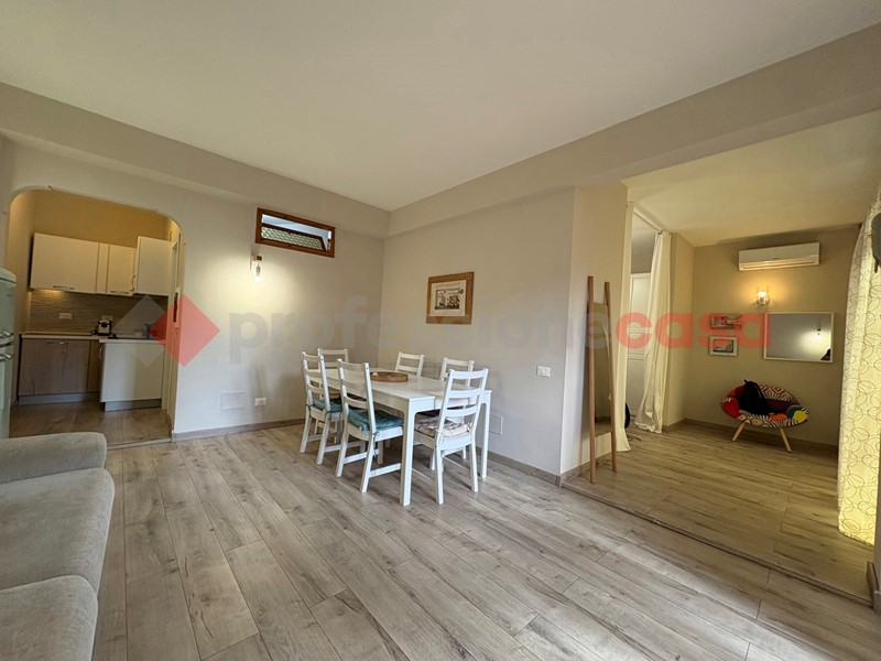 Questo appartamento della superficie di 60 mq. rappresenta un'opportunità unica, immerso in un contesto signorile e tranquillo. Recentemente ristrutturato, l'immobile offre un ampio e luminoso soggiorno con cucina a vista, due camere da letto spaziose ed un bagno moderno e funzionale con doccia. Il giardino privato di circa 100 mq. ben curato consente di godere di piacevoli momenti all'aria aperta, mentre il posto auto privato aggiunge ulteriore comodità. La posizione, con accesso diretto alla spiaggia, rende questa proprietà ideale sia come casa vacanze che come investimento, grazie alla sua alta redditività.