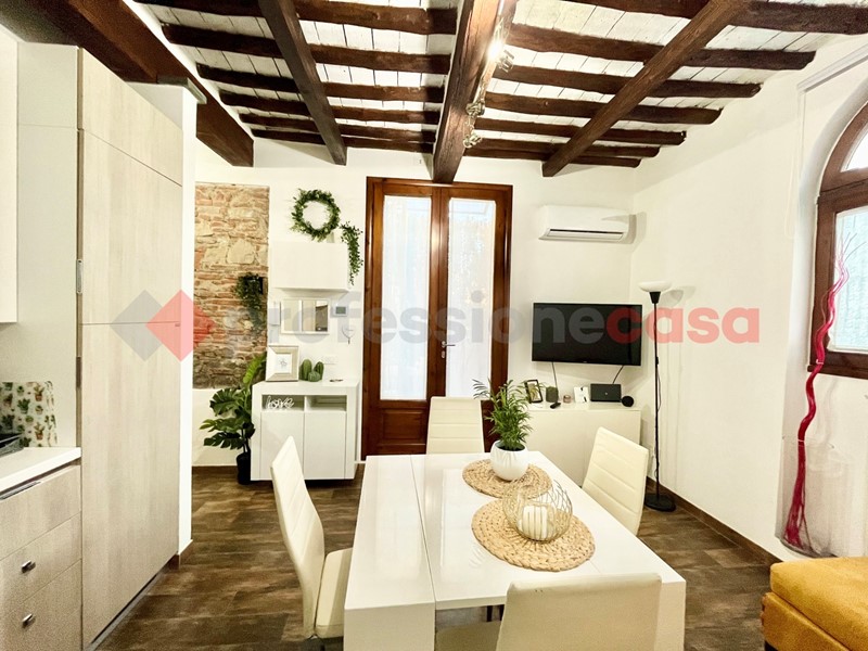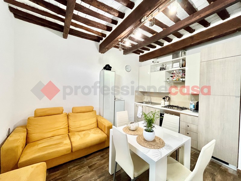 Con i suoi 50mq circa, i pavimenti in gres, gli infissi con vetrocamera, e la conservazione dei tipici travicelli toscani al soffitto per un'atmosfera accogliente e autentica, si sviluppa con l'ingresso direttamente nel soggiorno con angolo cottura, disimpegno, camera matrimoniale, bagno con doccia.
