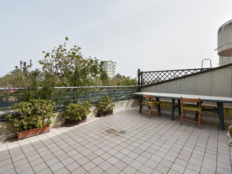 Uno dei punti di forza dell'abitazione è il terrazzo di 27 mq, esposto a est, da cui si può godere della brezza marina e di una vista aperta, perfetto per colazioni all'aperto o serate estive in compagnia.