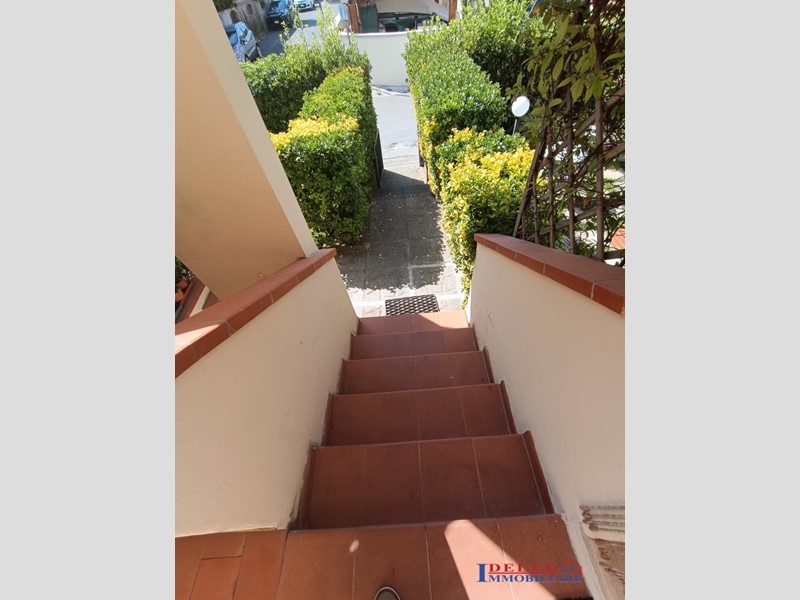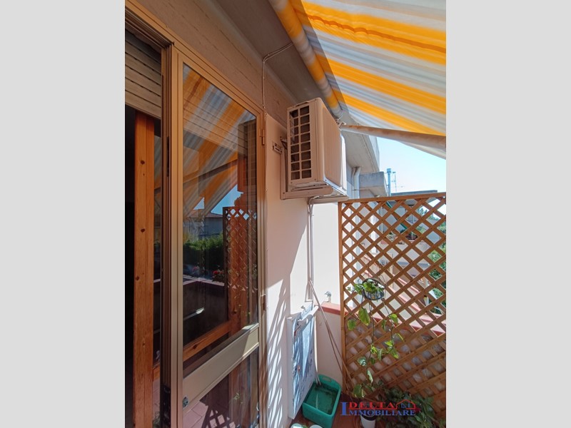 Rosignano Solvay in  zona residenziale si vende appartamento in schiera con accesso da scala esterna  a comune a 4 unità immobiliari. L'appartamento si trova al primo ed ultimo piano : L'accesso  dell'appartamento è nell'ampio soggiorno/pranzo su cui affaccia un cucinotto dedicato esclusivamente alla cottura. Dal locale soggiorno si accede all'ampio balcone arredabile adatto ad essere utilizzato  anche per le cene estive. In questo vano è collocata la pompa di calore . Nella parete opposta al balcone si apre la porta dalla quale si accede al disimpegno notte dove si affacciano le due camere , La camera matrimoniale dispone di un balcone privato che aggetta sul retro dell'edificio. Completa la proprietà il garage collocato sulla corte condominiale . Il riscaldamento è autonomo a metano Le spese condominiali sono molto basse . Rif :Z1124 - Maggiori Dettagli: terrazza abitabile, garage, Climatizzato