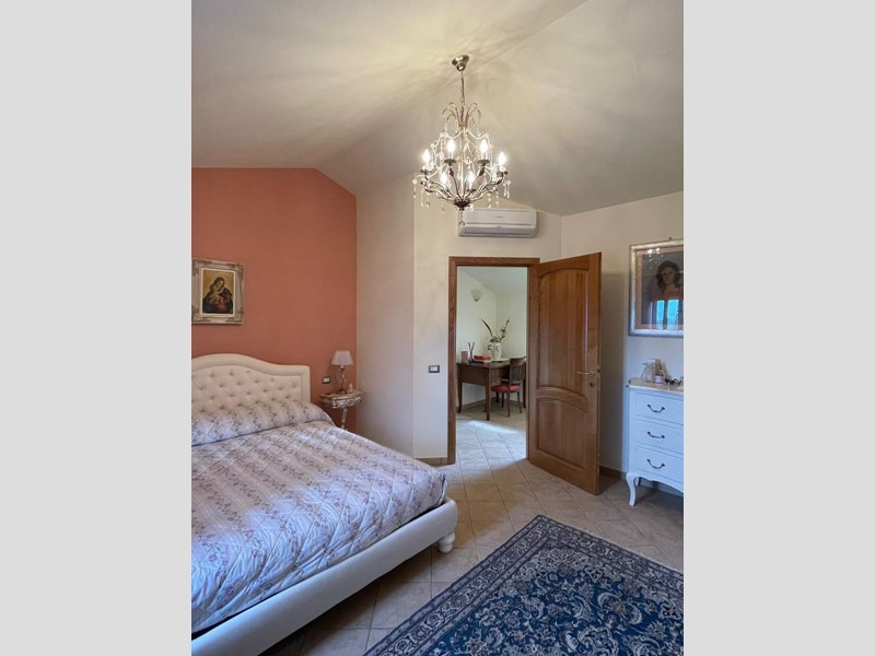 Al primo piano, la villa prosegue con due ampie camere da letto, entrambe spaziose e luminose, una delle quali dispone anch'essa di una cabina armadio. Inoltre, si trova un ulteriore bagno, che serve questa zona della casa, rendendo l'abitazione ancora più pratica e confortevole.