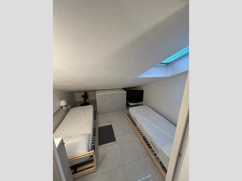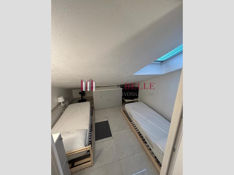 Al 2° piano si trova il soggiorno ampio e luminoso, con grande balcone pranzabile, un divano letto, la cucina attrezzata e un primo bagno; al 3° ed ultimo piano dello stabile sono presenti le 5 camere mansardate (9 PAX), un secondo bagno con doccia e un ampio ripostiglio. L’immobile è dotato di riscaldamento autonomo e climatizzazione freddo/caldo. Completa la proprietà il posto auto assegnato e l’accesso a un vasto giardino condominiale. Inoltre, il complesso residenziale offre numerosi servizi (minimarket, ristorante, edicola, ecc.) che arricchiscono l’esperienza abitativa.