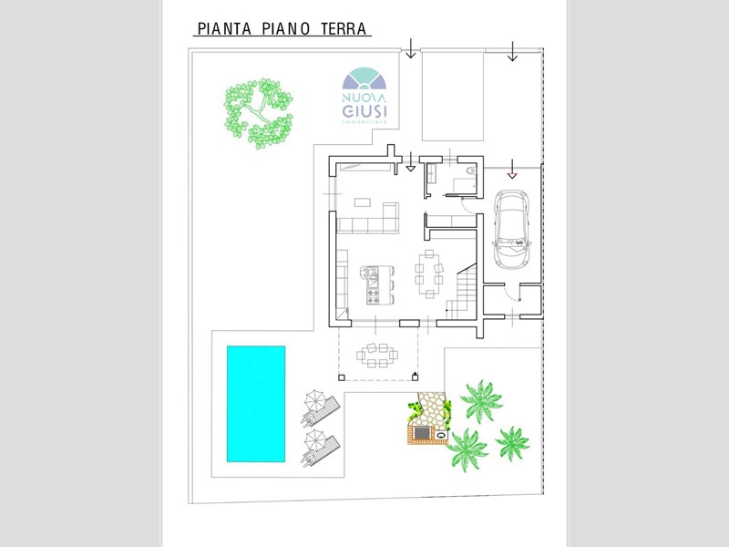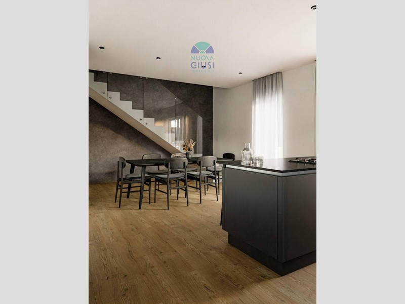 - Ingresso, grande zona giorno di quasi 50 metri, con soggiorno e cucina, wc, tre spaziose camere, bagno, terrazza, loc. lavanderia, portico e giardino esclusivo (con possibilità piscina).