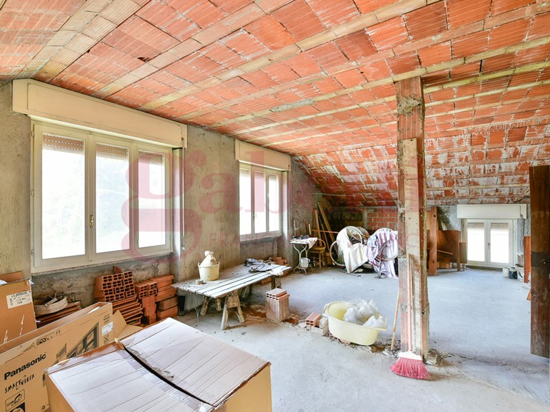 La stessa scala accompagna al piano sottotetto di altri 90 mq mansardato alto (con H.MIN. 1,65 ed H.MAX. 3,20) ad oggi non rifinito ma con possibilità di recupero per ricavare un'abitazione.