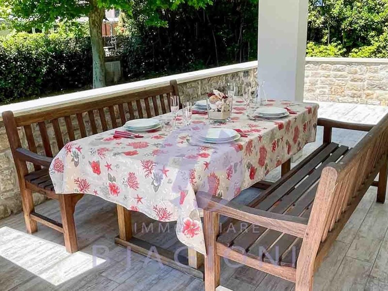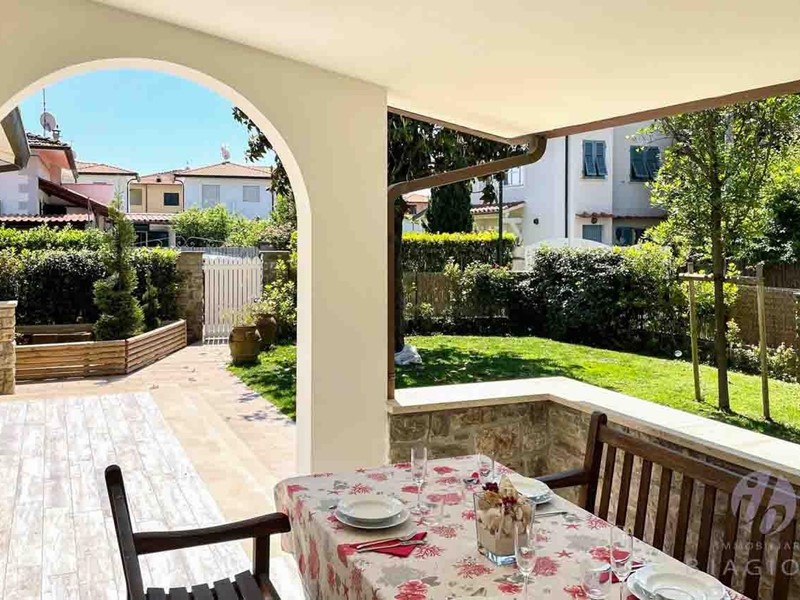 Bellissima villa singola con ampio giardino perimetrale e posti auto privati, situata in zona tranquilla e riservata, a poca distanza dal mare. Distribuita su due piani fuori terra al suo interno è composta da ampio soggiorno con zona pranzo e veranda abitabile, cucina, due camere matrimoniali, bagno e ripostiglio al piano terra. Piano primo composto da due camere matrimoniali di cui una con bagno privato e terrazzo, disimpegno ,camera singola e altro bagno.