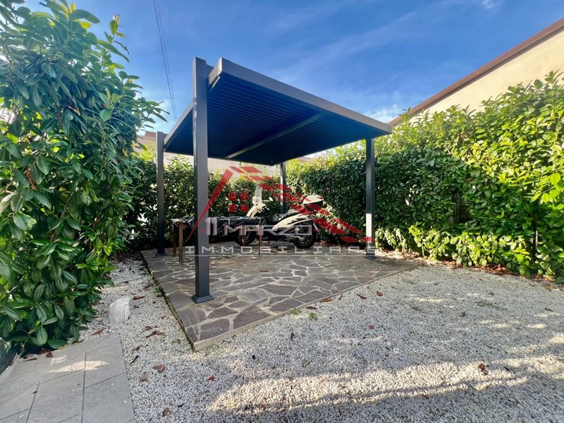 Si accede alla casa tramite cancello carrabile indipendente, che affaccia su una resede privata di circa 60mq corredata da allacci di luce e acqua, ripostigli sottoscala, barbecue esterno in muratura e un bel pergolato, per cene, pranzi e momenti di relax.