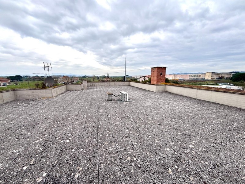 Sopra il capannone, con ingresso indipendente, un bellissimo appartamento di 145 mq circa con: ingresso, sala da pranzo con zona cottura separata, soggiorno, disimpegno notte, due ampie matrimoniali, camera doppia con servizio e bagno oltre a 2 terrazze (per totali 40 mq).