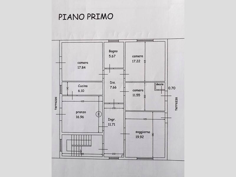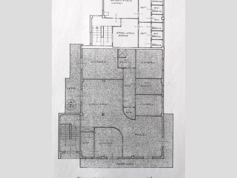 Il capannone più piccolo ha una metratura di 200 mq con tre ampi ingressi (pedonali e carrabile) ed è costituito da un unico vano attrezzato e con accesso interno al primo piano dove si trovano per una superficie di circa 80 mq, due ampi uffici/spogliatoi entrambi dotati di bagni. Da elegante vano scala esterno indipendente si raggiunge l’appartamento al primo piano realizzato con finiture di grande pregio e composto da bellissimi soggiorno e zona pranzo entrambi con terrazzo, cucina abitabile con terrazzo, ripostiglio, disimpegno notte, secondo ripostiglio, due ampie camere e doppi servizi. Dalla terrazza al piano, mediante scala esterna si raggiunge la stupenda terrazza sul tetto, che si sviluppa per tutta la superficie dell’abitazione .
