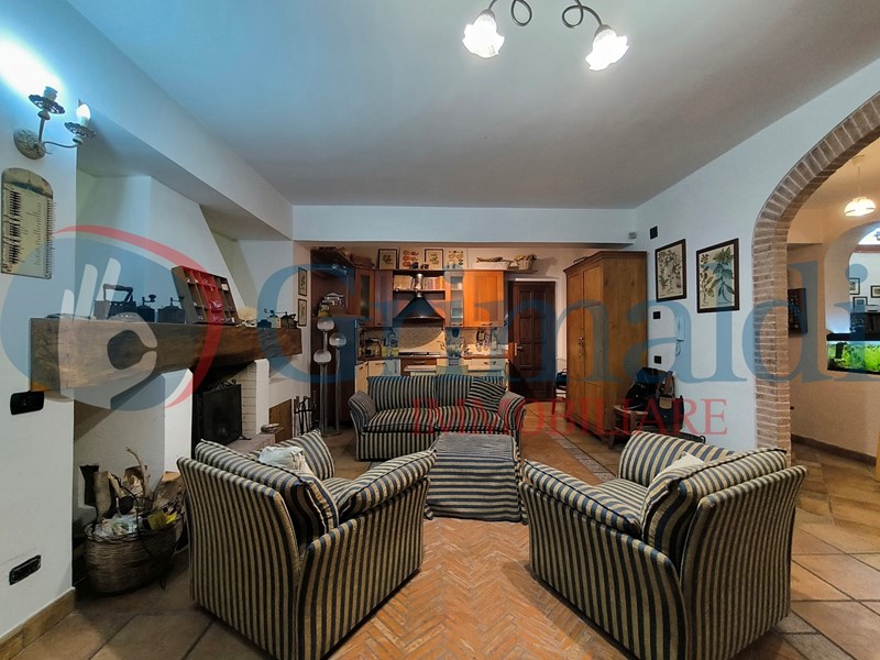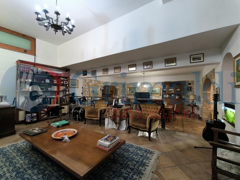 Al piano di ingresso troviamo un grande Salone con zona soggiorno e camino una grande cucina, pochi gradini e si raggiunge una camera da letto ed un bagno ed una zona studio che prospetta sul salone.