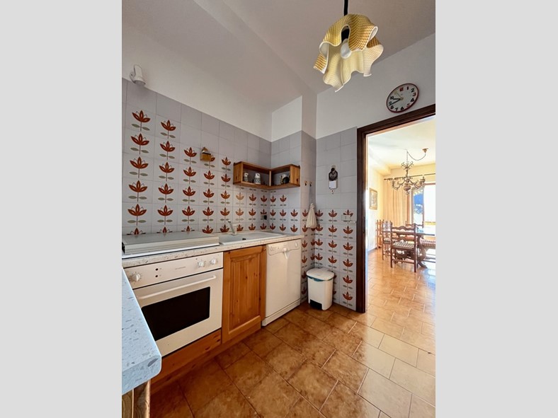 L'appartamento, al primo piano di un complesso di sole sette unità abitative, con ampio giardino comune e posto auto coperto di proprietà, è così strutturato: da un porticato comune si accede ad un ingresso, spazioso soggiorno con camino, cucina, disimpegno, bagno finestrato con doccia e due camere da letto. Il punto di forza dell'immobile è indubbiamente la grande terrazza panoramica con affaccio sulla zona giorno.