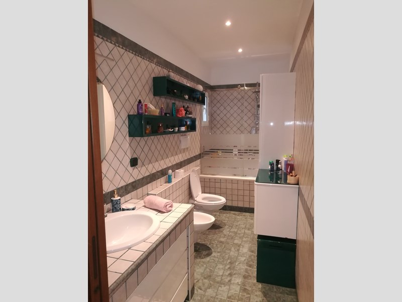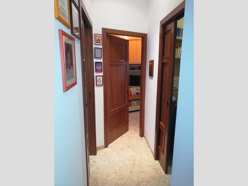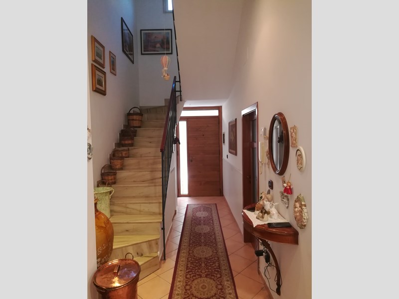 INTERNO: l’immobile si presenta ben rifinito in ogni dettaglio grazie ad una manutenzione periodica. L’altezza del solaio è di 3,50 mt tanto che in diversi punti della casa è stato realizzato la controsoffittatura con faretti d’arredo. Il riscaldamento è autonomo, i diffusori sono in ghisa. I 2 bagni sono ristrutturati con rifiniture in ceramica. L’immobile è premunito di autoclave privato di 330lt. L’impianto elettrico è a norma in ottimo stato con placche della serie living. I climatizzatori sono presenti in tutte le stanze. La porta d’ingresso è blindata; gli infissi sono in vetrocamera a taglio termico tutti dotati di zanzariera e le persiane sono in alluminio. Le porte interne sono tutte in legno e per la maggior parte con sistema a scomparsa. Il pavimento è in gres con posa in diagonale nella zona giorno e in marmo nella zona notte.