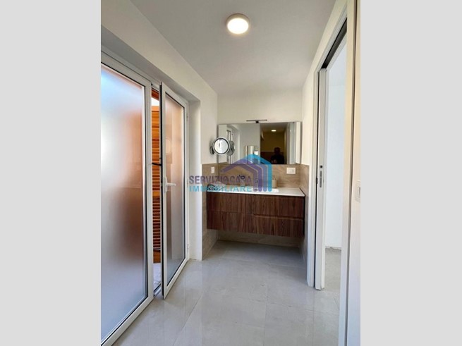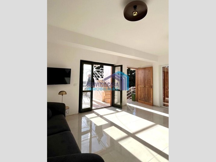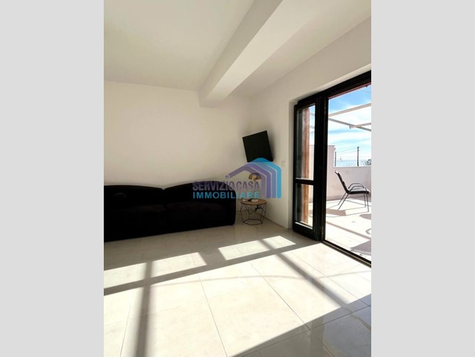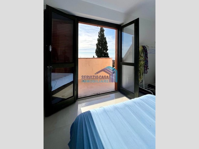 Nel comune di Letojanni nel residence and quot;Gli ulivi and quot; proponiamo appartamento di mq 100 su due livelli.\n\nL'immobile si suddivide come segue:\n\nIngresso su cancelletto che tramite scala esterna di proprietà porta al piano primo così suddiviso: terrazzo panoramico vista mare dal quale si accede, tramite porta d'ingresso, alla zona cucina/soggiorno (dotata di pozzo scala di collegamento al piano superiore) e bagno con balcone.\n\nSempre tramite scala esterna si accede al piano secondo composto da camera matrimoniale con terrazzino panoramico vista mare/Taormina e bagno con balcone.\n\nL'immobile recentemente ristrutturato presenta pavimenti interni e balconi in gres porcellanato lappato beige e terrazzini pavimentati con pietra di Leuca.\n\nI bagni sono rivestiti con gres porcellanato tinta unita/effetto carta parati e dotati di sanitari di pregio.\nImmobile presenta nuovo impianto elettrico e idrico (anno 2024), tetto isolato termicamente, predisposizione antenna, climatizzatore.\nIncluso nel prezzo posto auto di proprietà.\nCondominio 25 euro mensili e discesa sulla spiaggia.