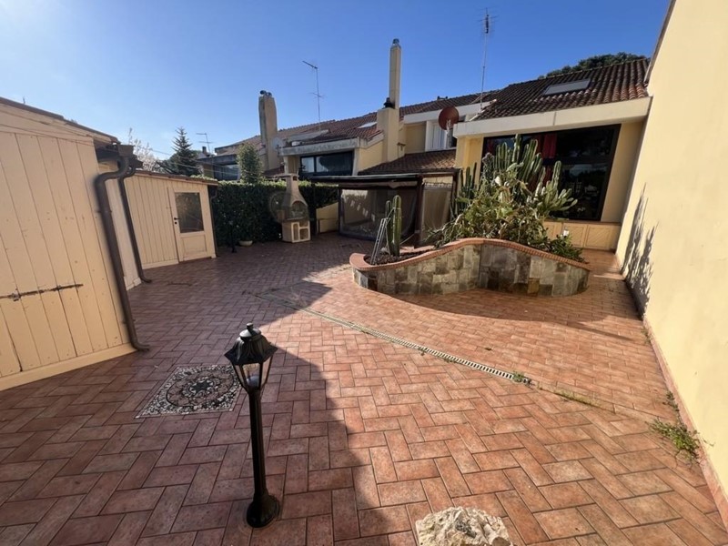 CECINA (LI)  Nella frazione di San Pietro in Palazzi,  in complesso residenziale elegante immerso nel verde con piscina, completamente recintato con accesso da cancello carrabile automatizzato,  proponiamo questa prestigiosa villetta a schiera disposta su due livelli fuori terra per una superficie complessiva di circa mq 195.  L' ingresso, avviene da un ampia resede esclusiva, attraverso un porticato veniamo accolti da un doppio salone open space con grande vetrata da cui si ha accesso alla corte retrostante anch' essa pavimentata,  cucina abitabile e bagno, attraverso una scala a vista si raggiunge il piano superiore dove si trova una zona living che può essere utilizzata anche come studio, o quarta camera, tre ampie camere di cui una con bagno privato e terzo bagno. La casa presente delle finiture di ottimo livello, tra cui i pavimenti in cotto al piano terra e in parquet di legno al piano primo,  zanzariere, climatizzatore. Dispone di impianto fotovoltaico a 6 Kw. Le spese condominiali annue sono di € 3.000, che però vengono compensate e ammortizzate con il ricavato dall' impianto fotovoltaico che è pari ad € 3.600 annue. E' possibile acquistare l' immobile completo degli arredi presenti pagando un sovraprezzo.  E' libero da subito. L' immobile rappresenta una soluzione ottimale per un grande nucleo familiare, la posizione è strategica in quanto permette di raggiungere in pochi minuti sia il centro di Cecina che il mare distante circa 2,5 km e raggiungibile attraverso una pista ciclabile, contattaci al per una visita prima che sia troppo tardi!  Per garantire la privacy dei proprietari, l'indirizzo può non rispecchiare esattamente l'ubicazione dell'immobile ed è utile al solo fine di fornire un riferimento generico per la sua localizzazione ed un ausilio alla consultazione. Le informazioni contenute nel presente annuncio possono variare dalla reale situazione tecnica, vi invitiamo pertanto a verificare le caratteristiche dello specifico immobile contattando direttamente l'Agenzia IMMOBILIARE LA CALIFORNIA. L'Agenzia declina ogni responsabilità per eventuali incongruenze, non rappresentando in alcun modo un impegno contrattuale.